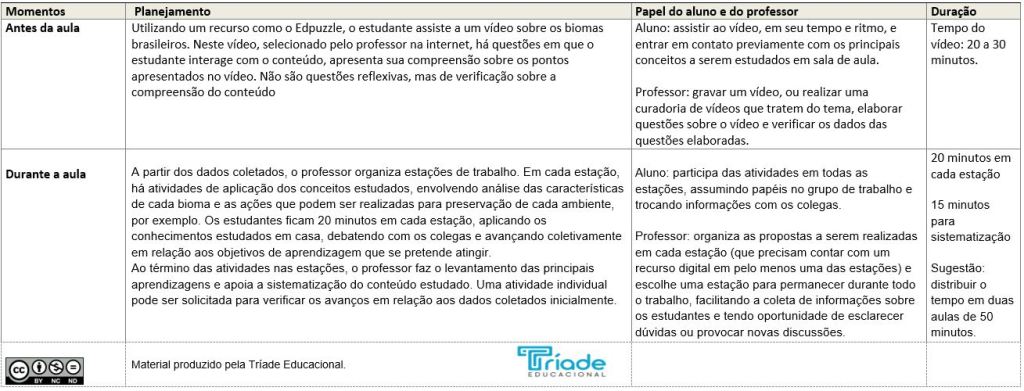 Os modelos utilizados nas publicações sobre ensino híbrido se combinam, se integram e ganham relevância com o foco na aprendizagem ativa dos estudantes, que é uma premissa para a educação híbrida. As metodologias ativas envolvem um percurso metodológico que possibilita a ação do estudante envolvendo-o na aprendizagem por descoberta, por investigação, por resolução de problemas e por projetos. Elas procuram criar situações de aprendizagem nas quais os aprendizes possam produzir, pensar e conceituar o que fazem, construir conhecimentos sobre os conteúdos envolvidos nas atividades, bem como desenvolver a capacidade crítica, refletir sobre as práticas que realizam, oferecer e receber feedback, aprender a interagir com colegas e professores e explorar atitudes e valores pessoais. Assim, não há modelos únicos ou propostas que não podem ser combinadas, desde que se tenha como ponto de partida uma estrutura em que o estudante esteja no centro do processo, ele que desenvolve competências e habilidades.